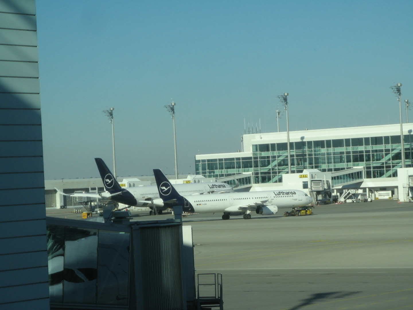 uns bei " Kaiserwetter" zum Münchner Flughafen...Eine plötzliche Notbremsung des Van in einer Autobahnbaustelle sas