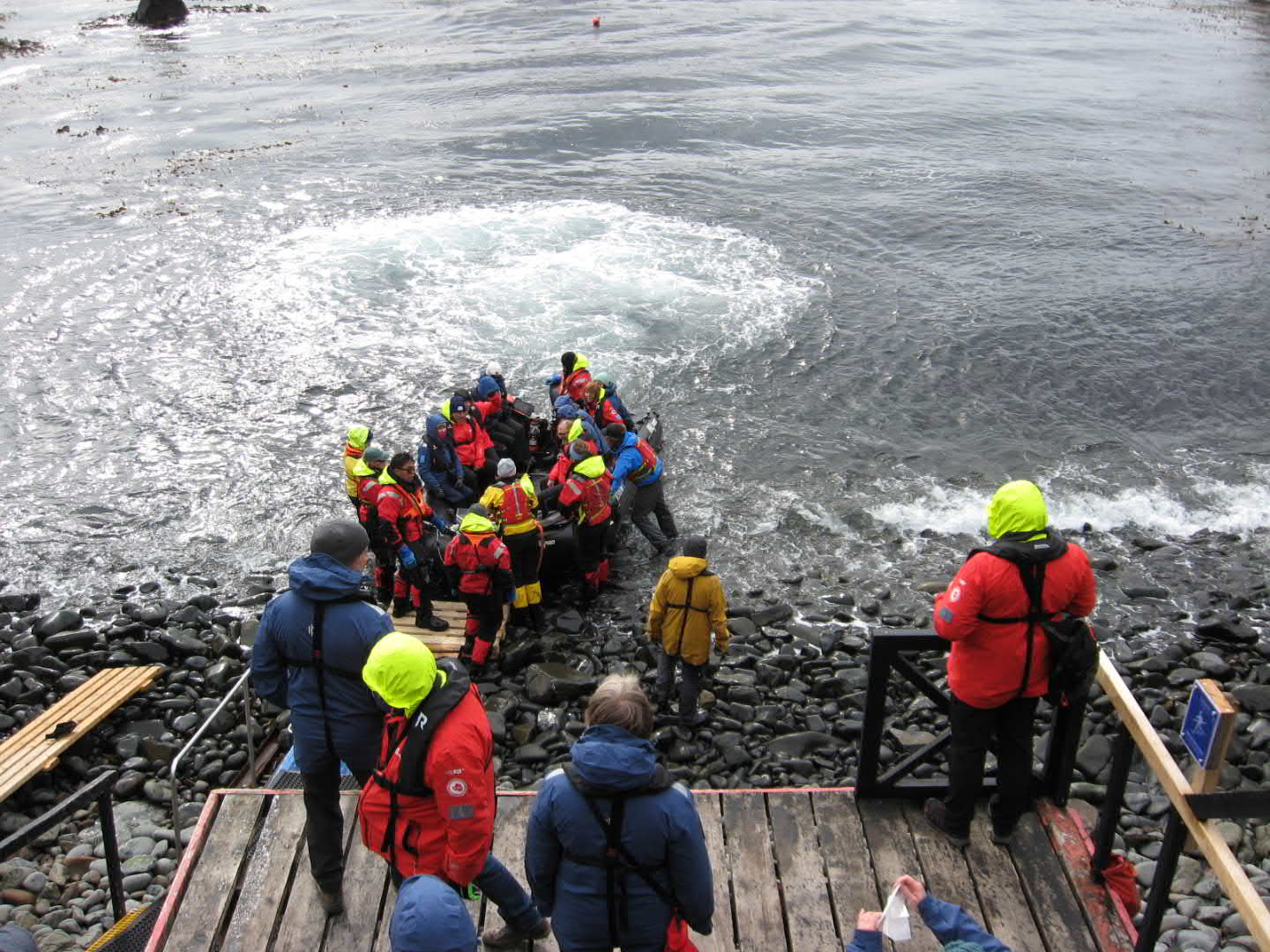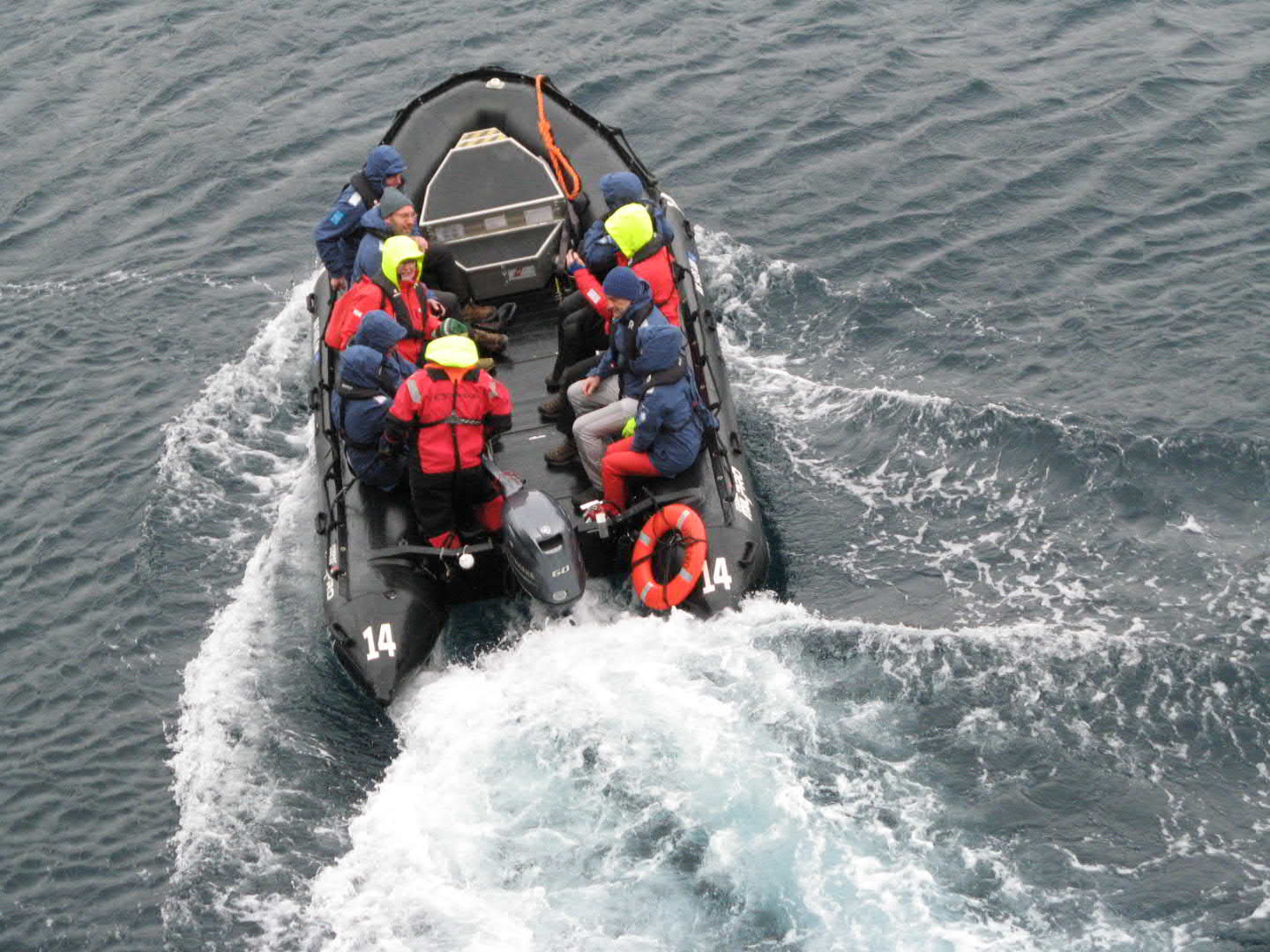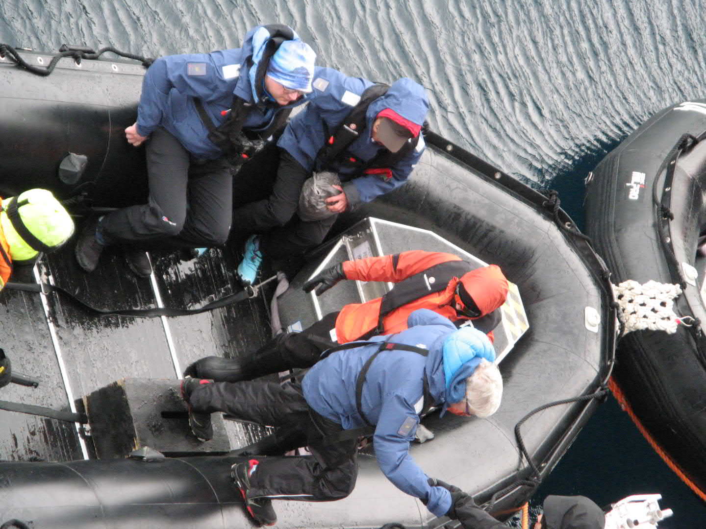 Schnelles einsteigen in die Zodiacs und los gehts! Im Rückblick unseres sicheres zu Hause!