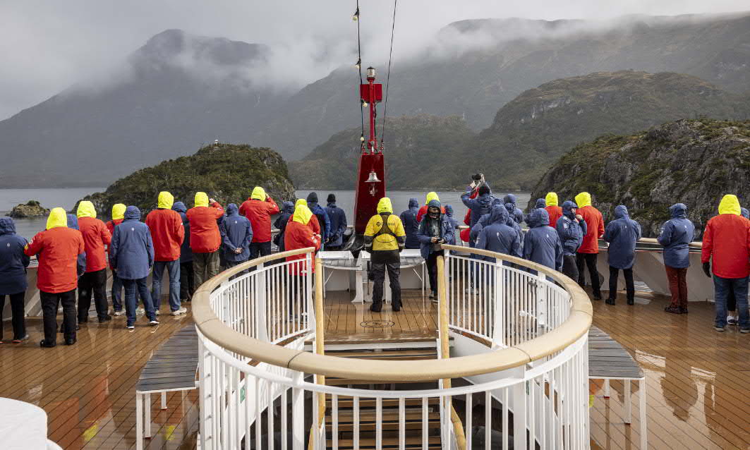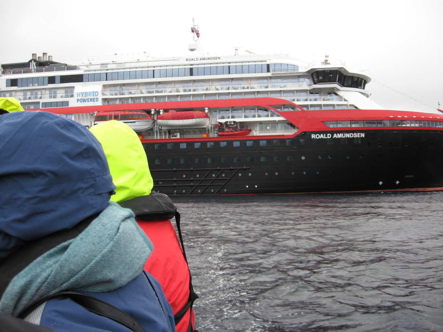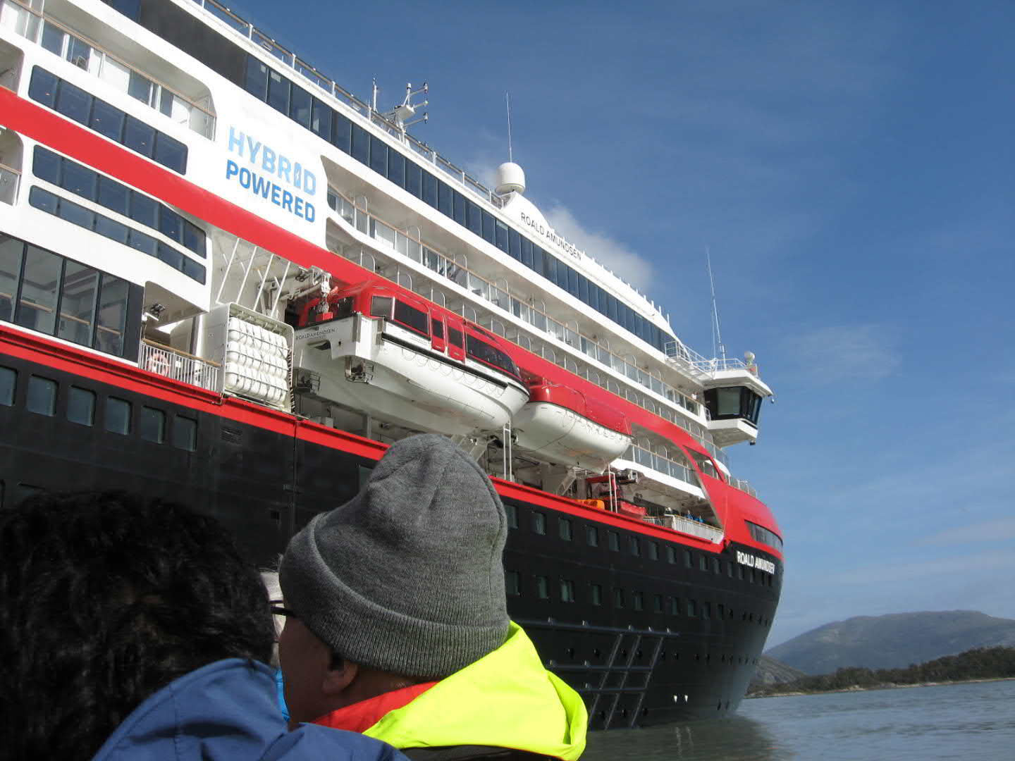 Bug der YELCHO Warten auf das Tenderboot Im Hintergrund die MS-Roald Amundsen