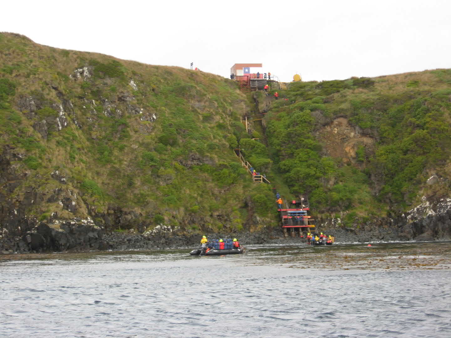 Wohnzimmer des Leuchturmwärters, gings wieder über die sturmgepeitschten Holzstege und Treppen runter zu den Zodiacs um