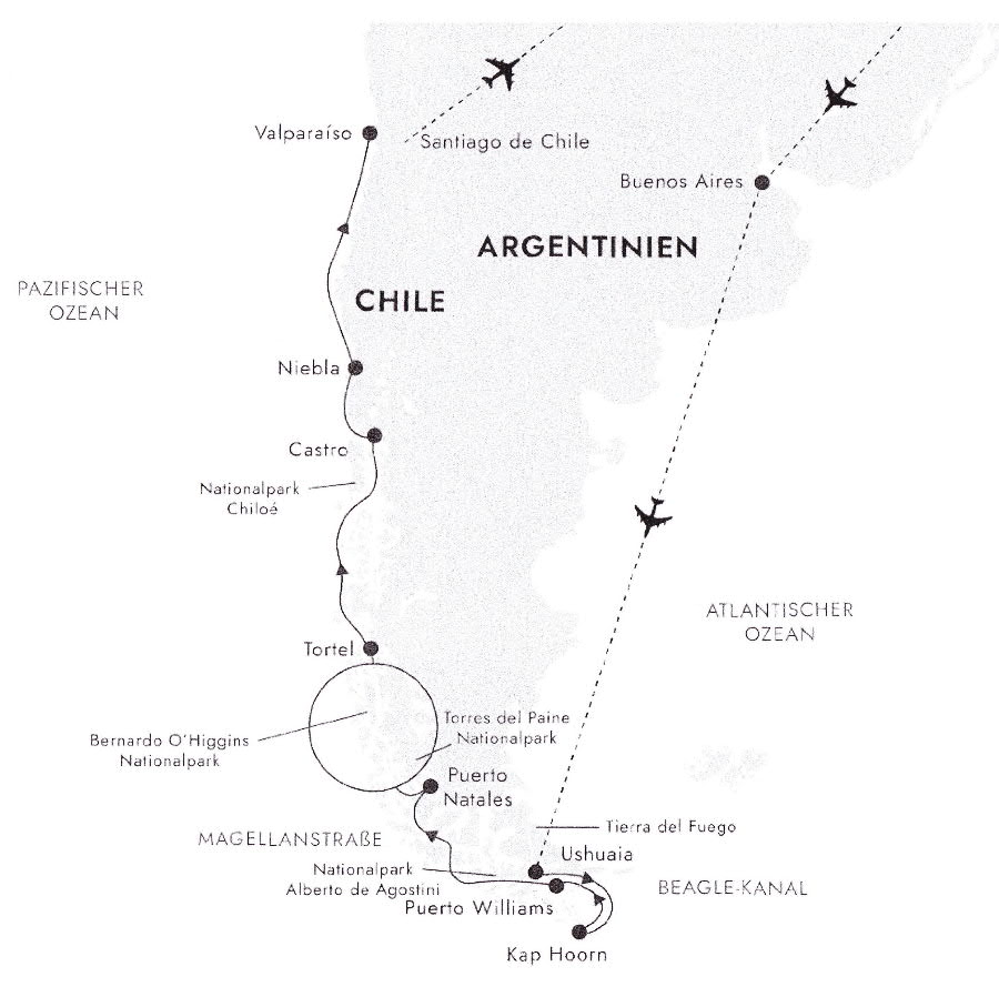 Am 6. und 7.Tag war Seetag.Die Strecke vom Pia Gletscher durch die vielen Fjorde nach Puerto Natales war doch sehr lang!
