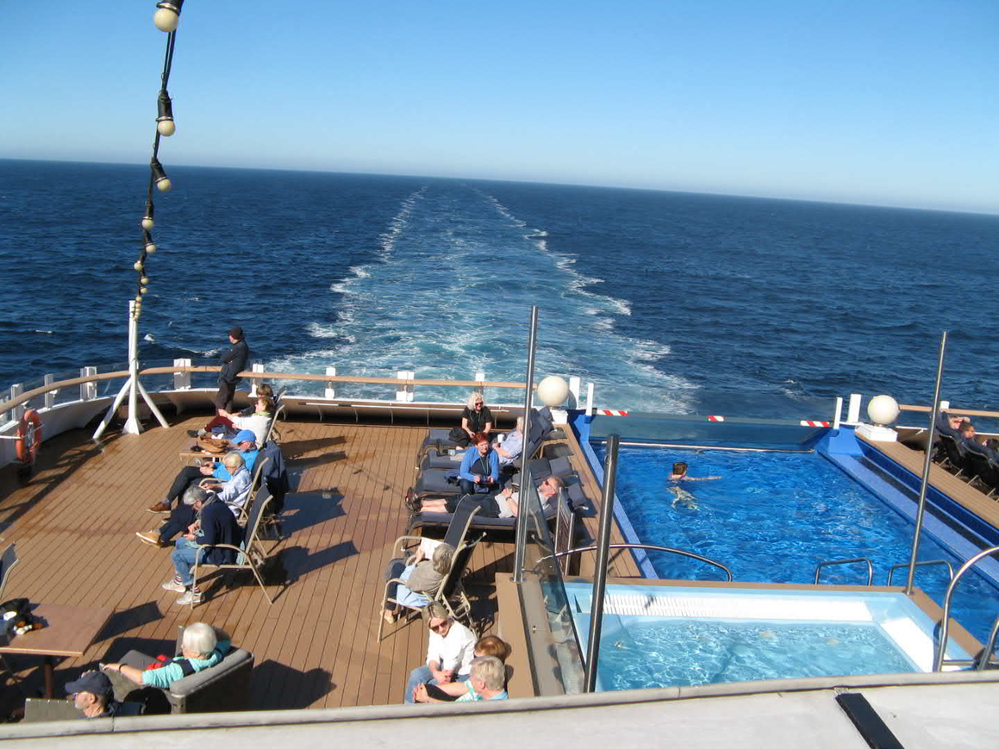 9. Tag : Ein Seetag. Am Abend desselben so gegen 23 Uhr passierte es! Meine Schwester speite wie ein Raiher und kam vom